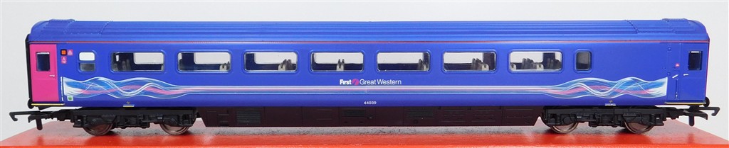 00 Coaches: Hornby scale length First Great Western Mk3 TGS 2nd class coach 44039 with added weight underneath