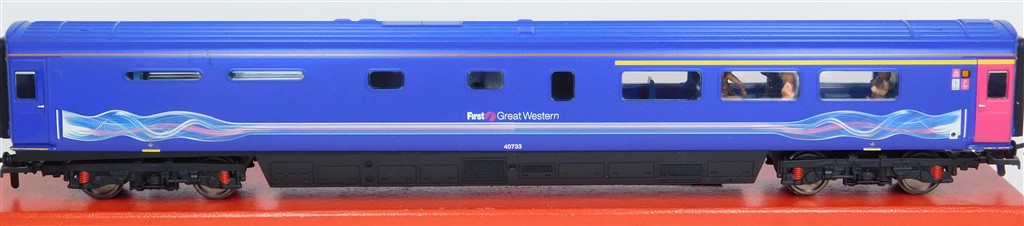 00 Coaches: Hornby scale length First Great Western Mk3 buffet coach 40733 with added weight underneath, mark on one side (A)