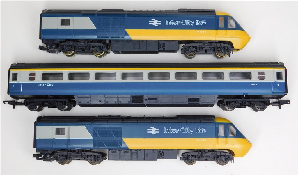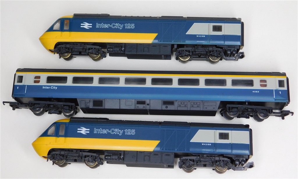 A Lima classic 3 car InterCity 125 set consisting of power car, driving trailer and scale length 1st class centre coach, tested and in working order and good condition, not fitted with lights, no original box