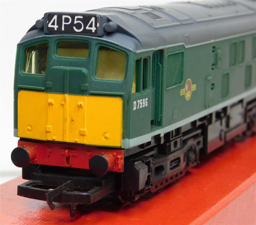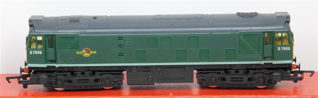 A Hornby ringfield motor BR green class 25 diesel loco number D7596, good runner with working directional headcode lights, in good condition, no original box.