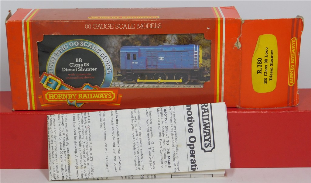 A 1980s production Hornby R780 class 08 diesel shunter 08 201, inside framed X04 motor model, good runner, in good clean condition, supplied in the original box.