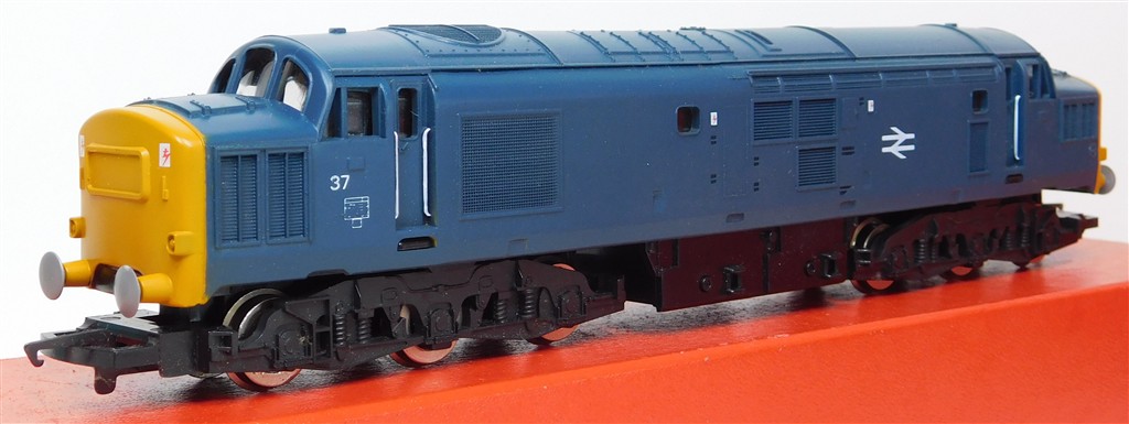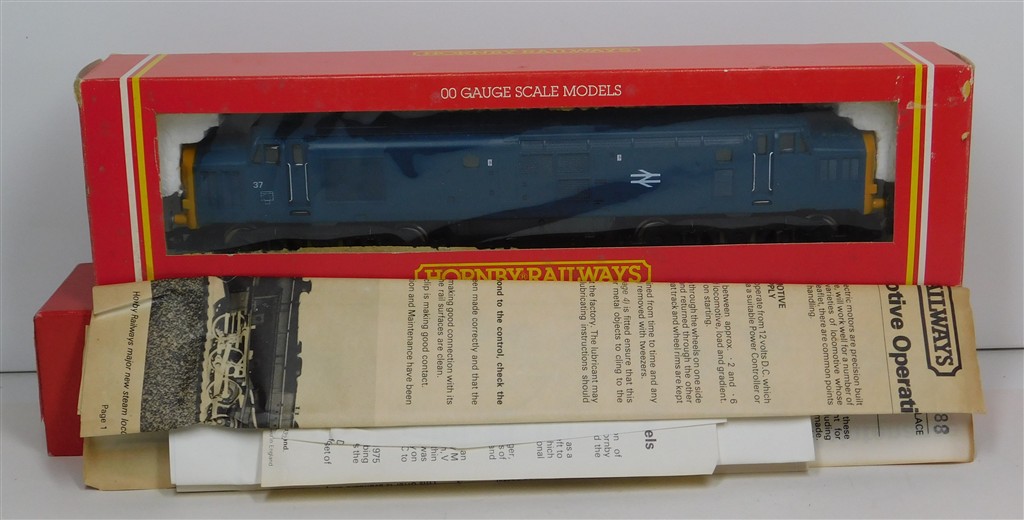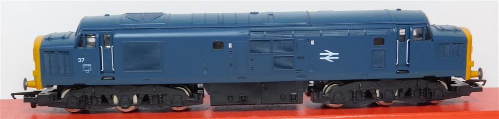 A Hornby R285 ringfield motor BR blue class 37 diesel loco unnumbered, good runner, in good condition, supplied in the original box missing the numbering transfer sheet.
