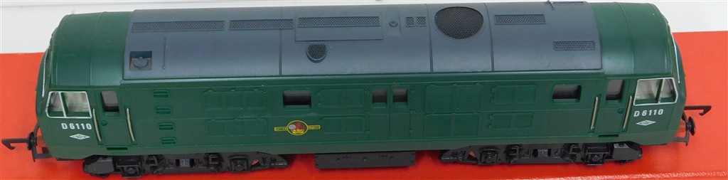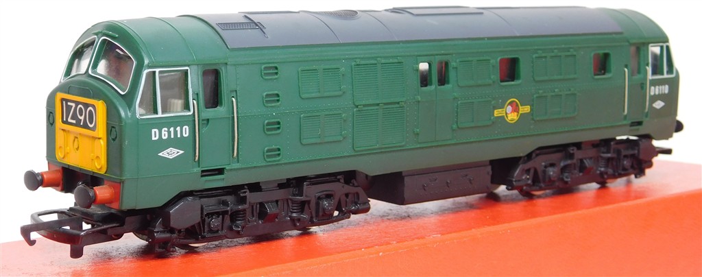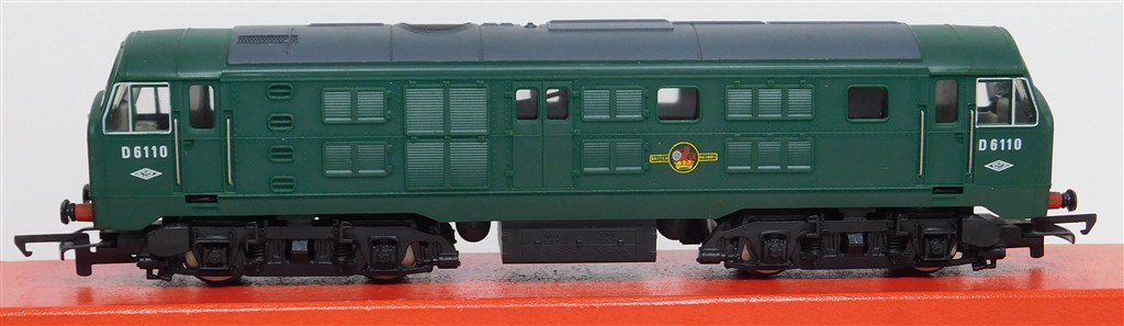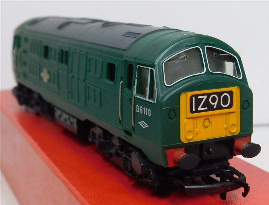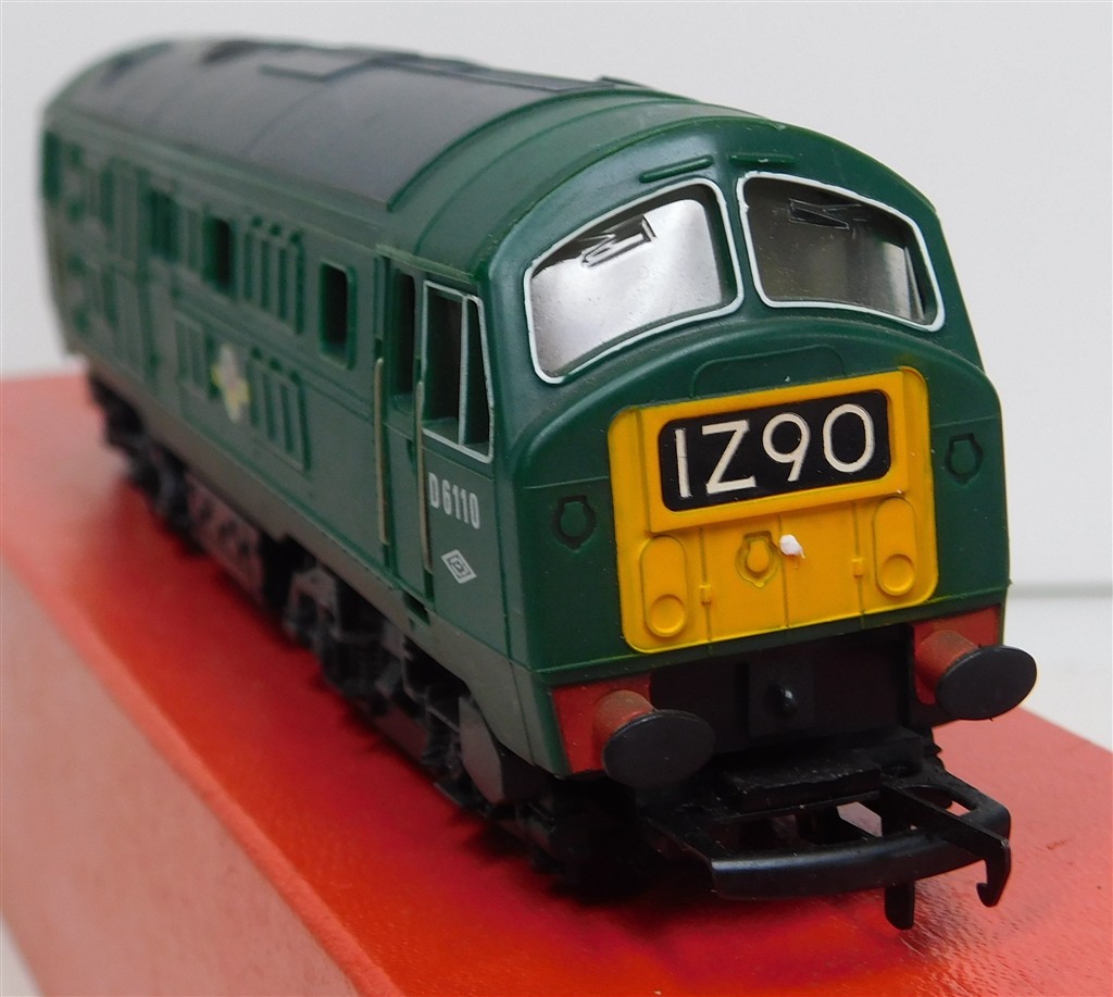 A Hornby R080 ringfield motor BR green class 29 diesel loco number D6110, good runner, in good condition, supplied in the original box