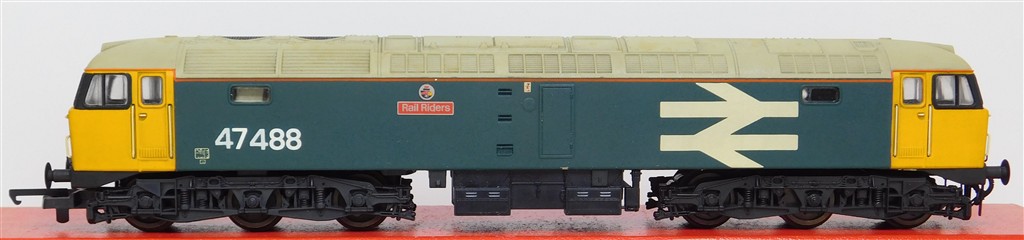 00 Diesels & Electrics: Lima nicely repainted BR large logo class 47 diesel loco number 47 488 "Rail Riders", good runner