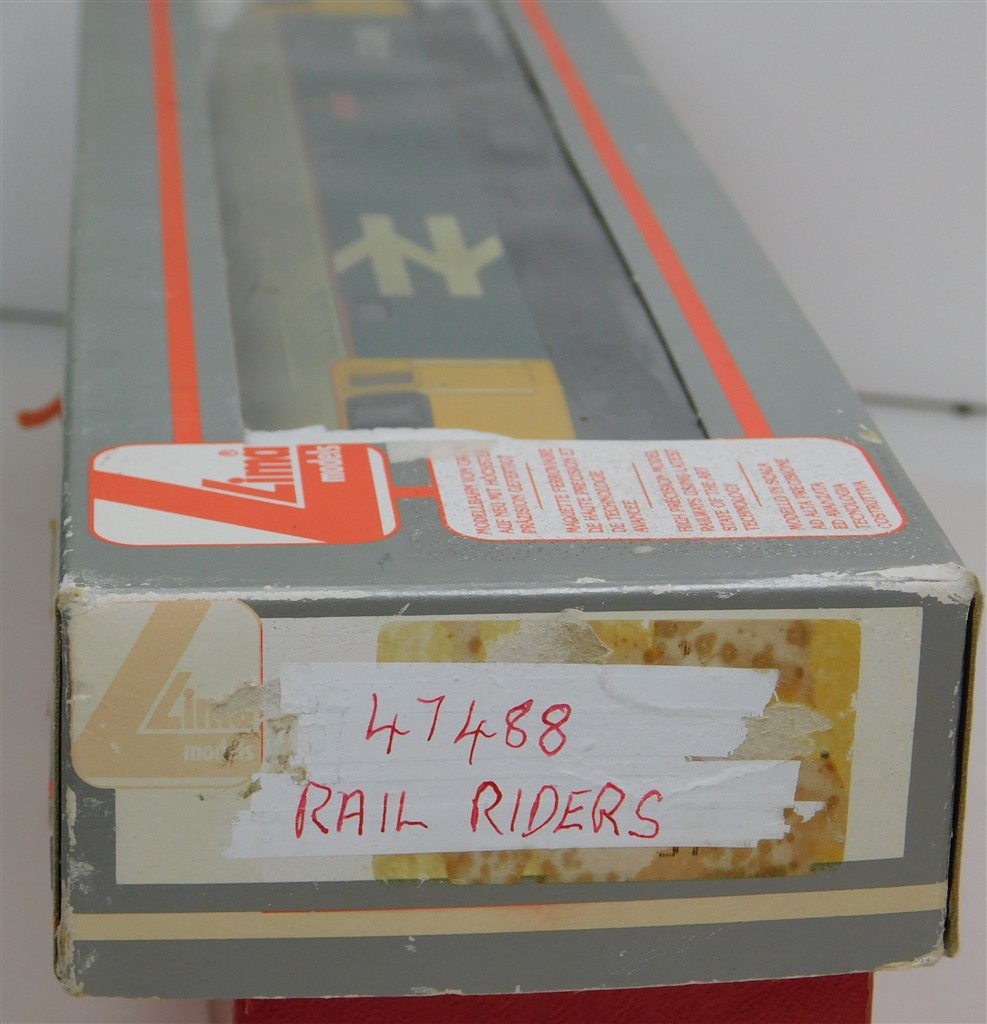A Lima nicely repainted BR large logo class 47 diesel loco number 47 488 "Rail Riders", good runner, detailed buffer beam at one end, in good condition, supplied in an original box