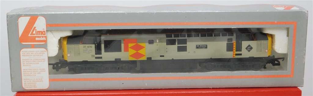 A Lima BR Railfreight class 37 diesel loco number 37 670 "St Blazey" with brass plates, good runner, in good condition, supplied in a relettered original box