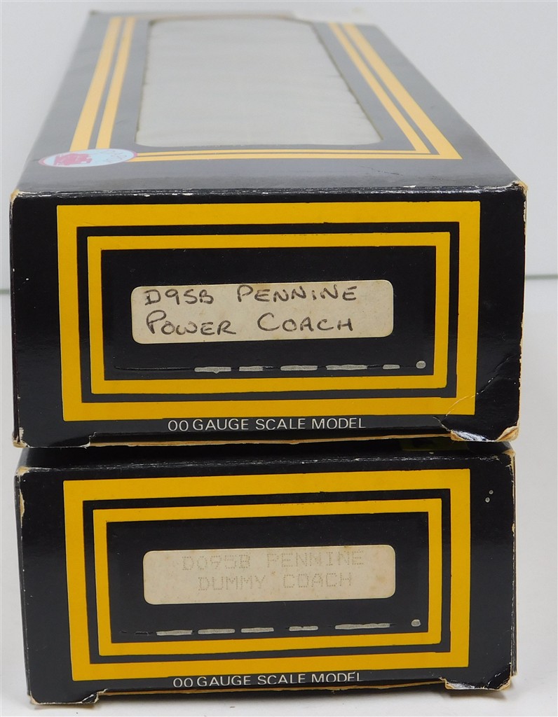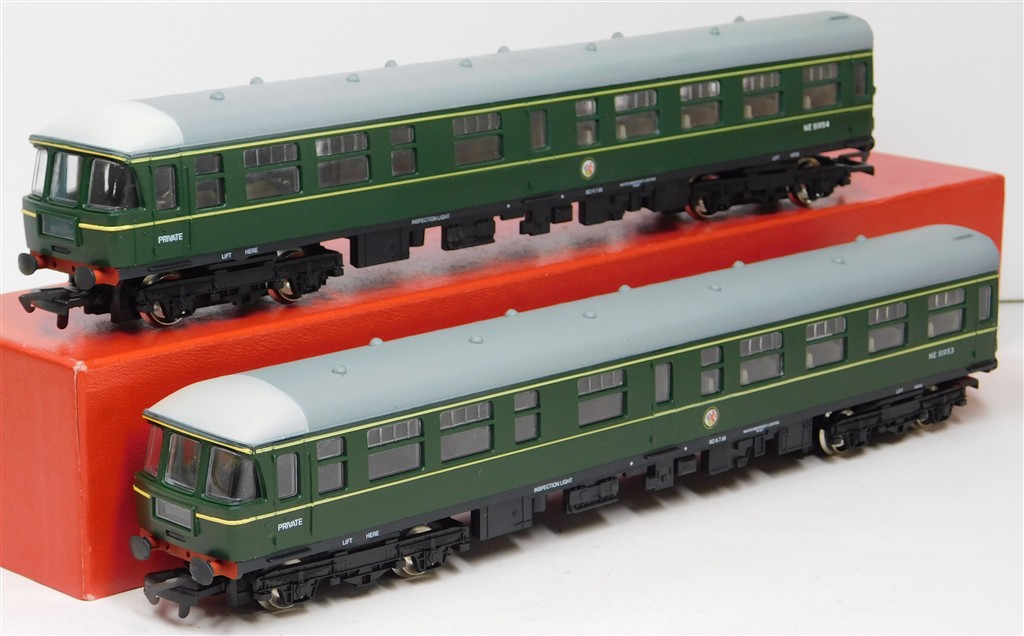 A Dapol D95B 2 car Trans-Pennine DMU number NE51594+NE51593, good runner, in good condition, supplied in the original box. Please note this is the old Trix tooling so the unit is 3.8mm/ft scale and Dapol designed the chassis to raise the body up a little.