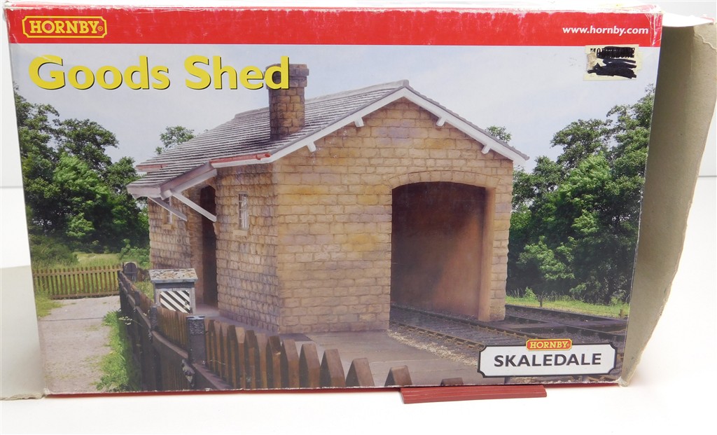 A Hornby R8635 Skaledale Goods Shed, missing one door and the base of doorway has been repaired otherwise in good condition, supplied in the original packaging