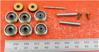 Set Ultrascale 12mm diameter replacement wheels, axles and gears for a Tri-ang motor bogie